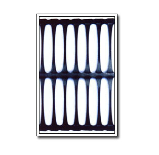 單向拉伸的土工格柵是由高分子聚合物經(jīng)擠出壓成薄板再?zèng)_規(guī)則孔網(wǎng),然后縱向拉伸而成。這種過(guò)程中使高分子成定向線性狀態(tài)并形成分布均勻、節(jié)點(diǎn)強(qiáng)度高的長(zhǎng)橢圓形網(wǎng)狀整體性結(jié)構(gòu)。此種結(jié)構(gòu)具有相當(dāng)高的拉伸強(qiáng)度和拉伸模量,特別是我公司此類產(chǎn)品更具有高水平的高早期(伸長(zhǎng)率在2%—5%)拉伸強(qiáng)度和拉伸模量。給土壤提供了理想的力的承擔(dān)和擴(kuò)散的連鎖系統(tǒng)。該產(chǎn)品拉伸強(qiáng)度大(>150Mpa),適應(yīng)各種土壤,是目前廣為采用的加筋加固材料。